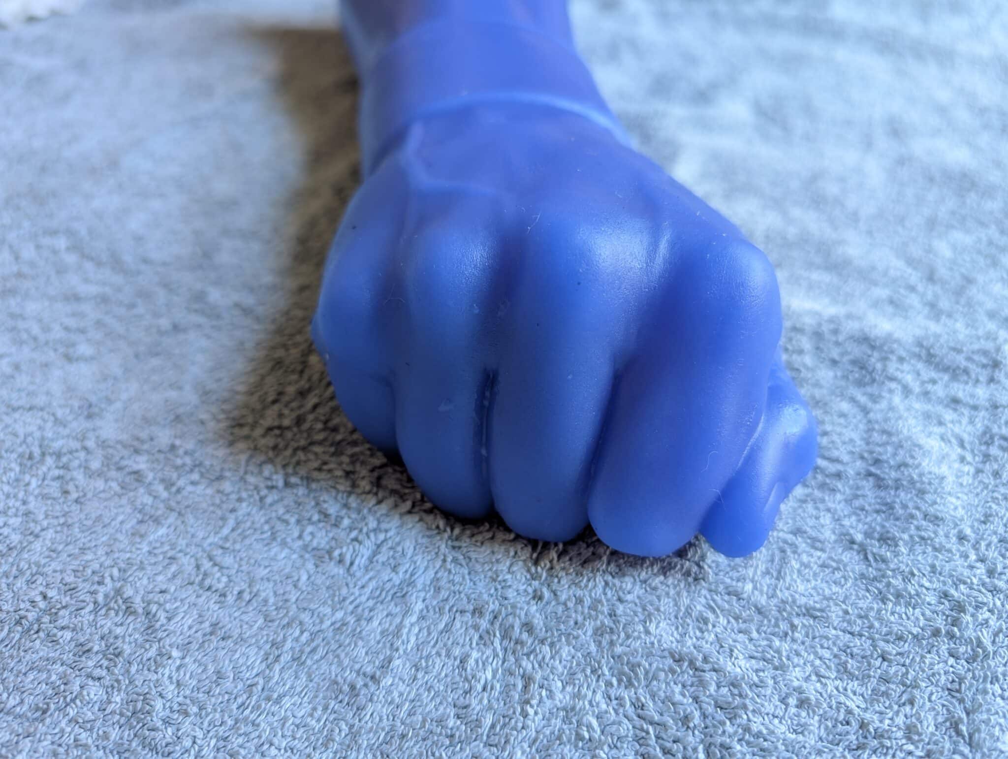 Let’s just say, I now consider myself a fisting champion! It’s big. Very very big. I chose the soft model because I find toys with a bit of give to be much more comfortable. You can see from the video that it’s squeezable. Even so, it took patience and determination and gallons of non-silicone lube to take it. A closed fist is immediately large and the life-like moulding means there are finger and knuckle ridges. I have to say it felt challenging and great.Who would love it?