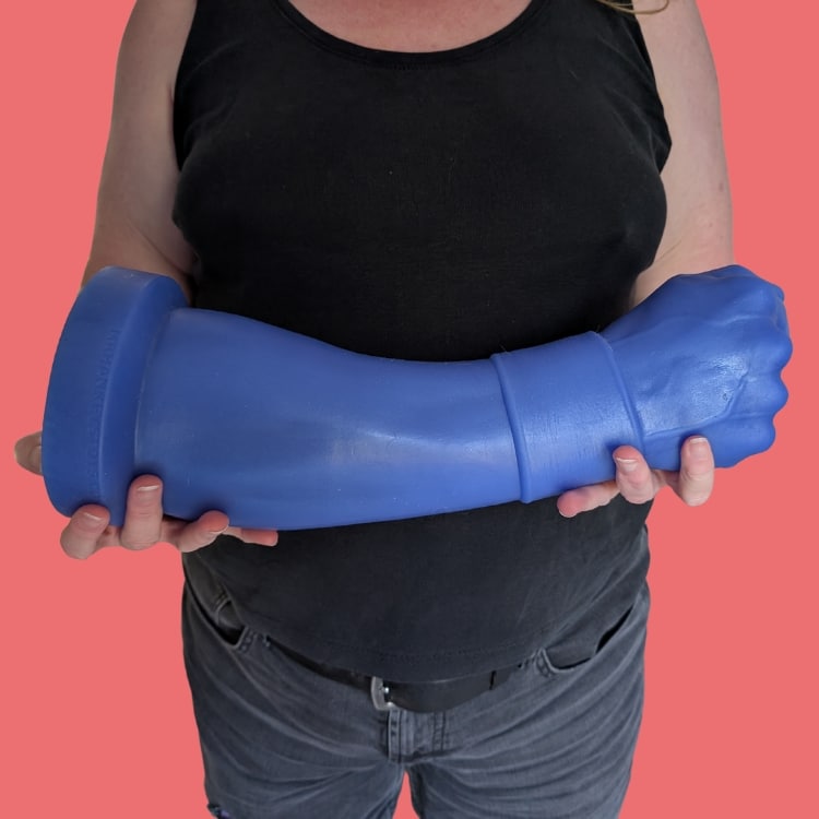 Let’s just say, I now consider myself a fisting champion! It’s big. Very very big. I chose the soft model because I find toys with a bit of give to be much more comfortable. You can see from the video that it’s squeezable. Even so, it took patience and determination and gallons of non-silicone lube to take it. A closed fist is immediately large and the life-like moulding means there are finger and knuckle ridges. I have to say it felt challenging and great.Who would love it?
